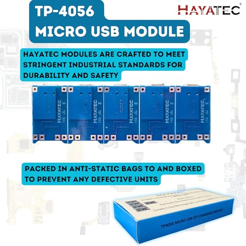 - The Hayatec module uses high quality charging chip TP4056, the external circuit is simple, good high precision charging.