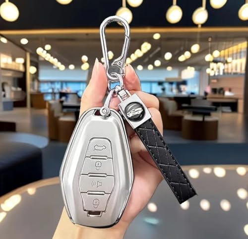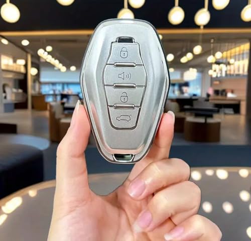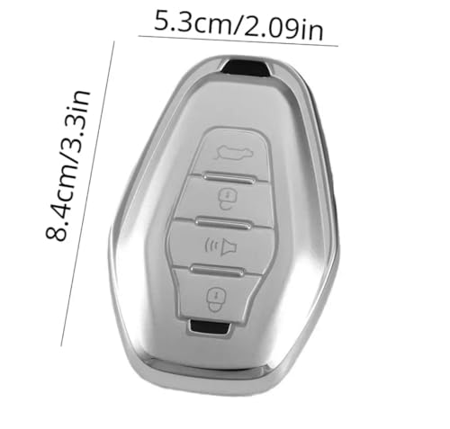 Generic - غطاء حماية مفتاح سيارة TPU – لجهاز تحكم عن بعد – متوافق مع Jetour X70، X70 Plus، X90 Plus، وشيري إبزيم بدون مفتاح – إكسسوارات داخلية مقاومة للخدوش - 4 أزرار ( فضي )