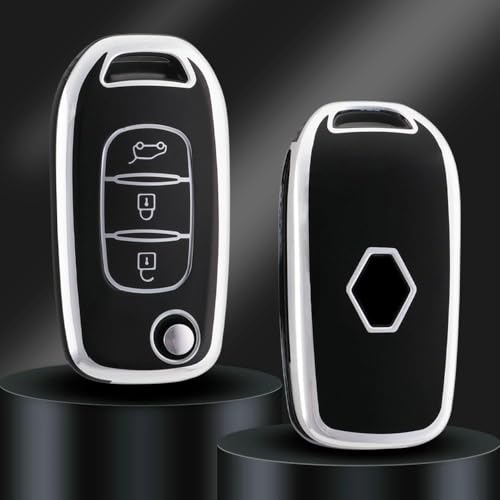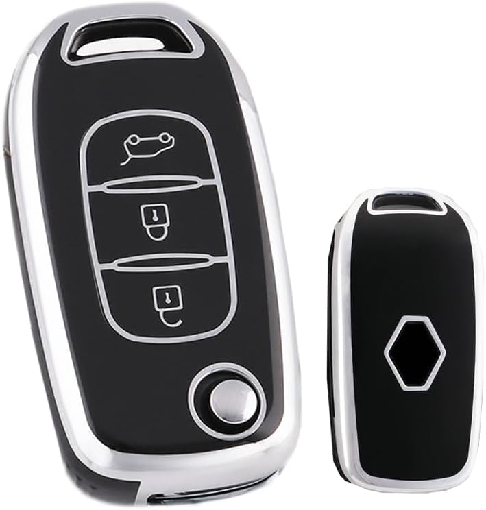 Generic - TPU Car Key Fob Cover | Compatible with Renault | Sandero, Logan, Clio, Arcana, Capture, Kadjar | 3 Buttons | Silver and Black
