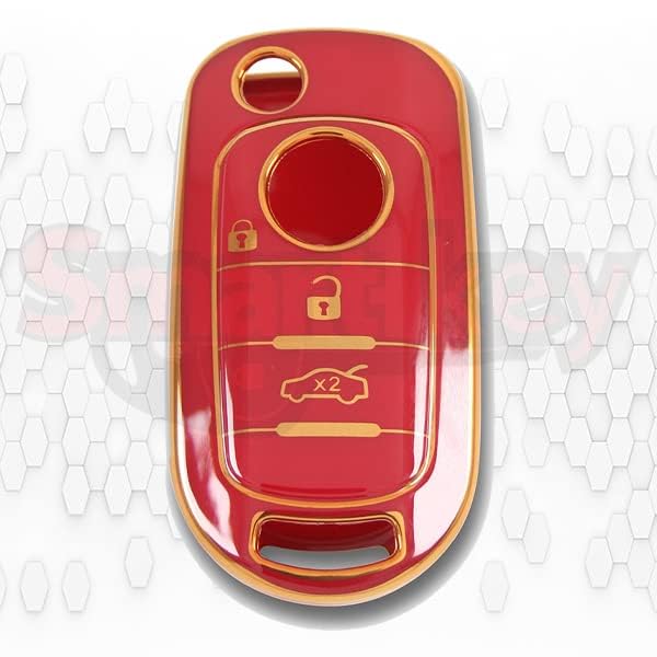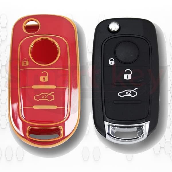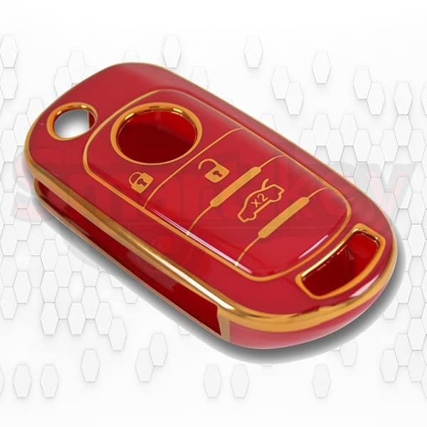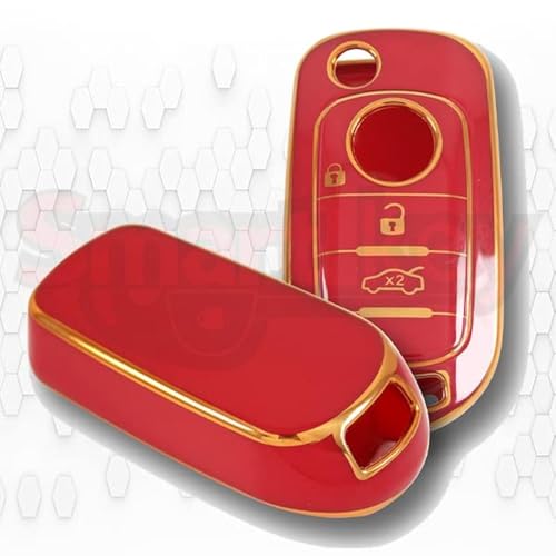 عام - غلاف ريموت احمر ذهبى مصنوع من مادة البولي يوريثان لسيارات فيات تيبو ، TPU RED GOLD Glossy Key Case For Fiat -Tipo - Egea