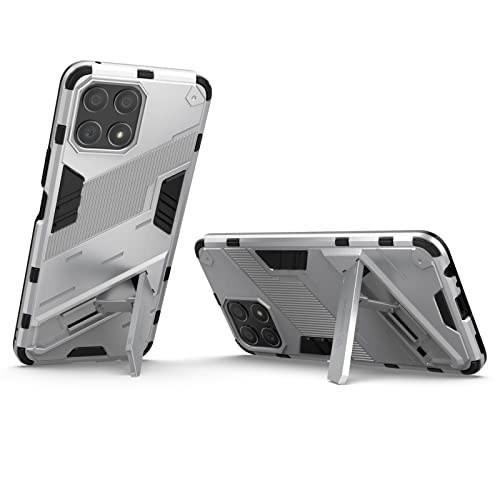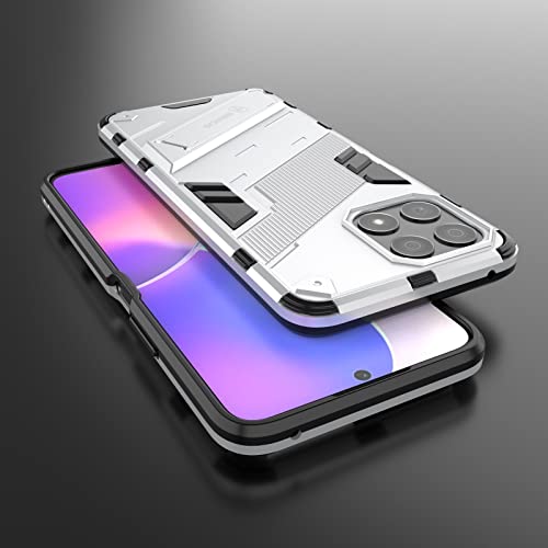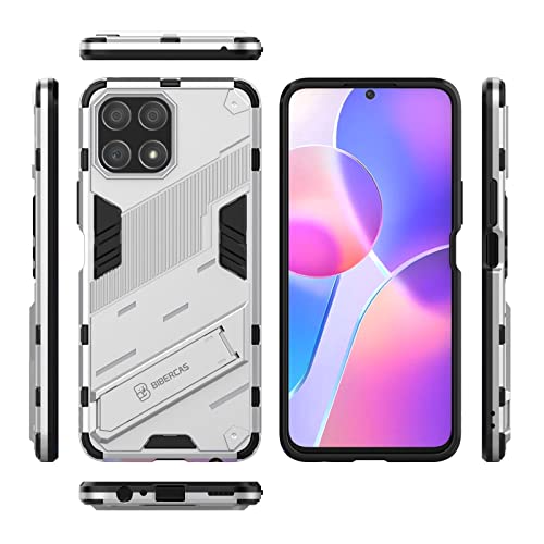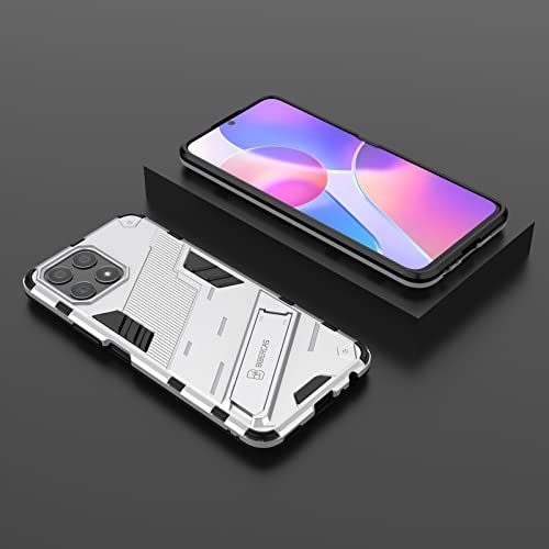 Generic - جراب موبايل بانك ارمور 2 في 1 مضاد للصدمات مصنوع من البولي كربونات والبولي يوريثين المقاوم للحرارة بمسند غير مرئي لموبايل هواوي هونرx8، شبكة الجيل الرابع 4G (ابيض)