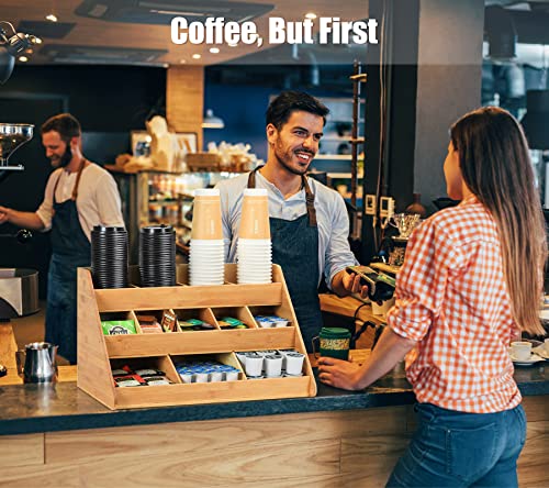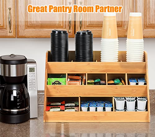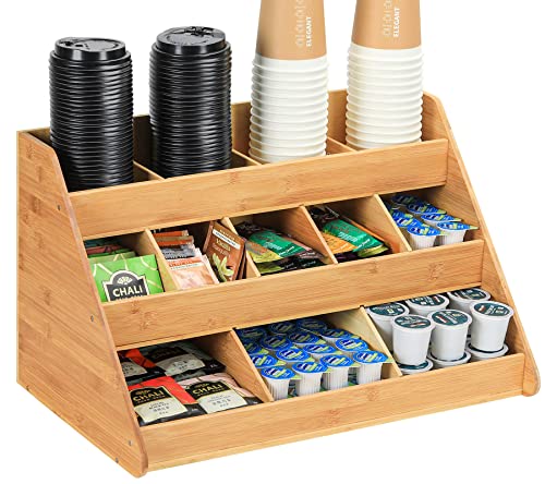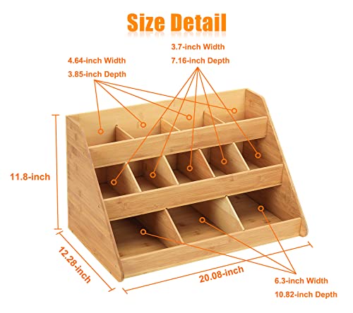 TQVAI - TQVAI Bamboo Coffee Station Organizer, 12 Compartments Condiment Rack Breakroom Accessories Caddy for K-Pods, Snack, Tea Bags, Disposable Cups, Original