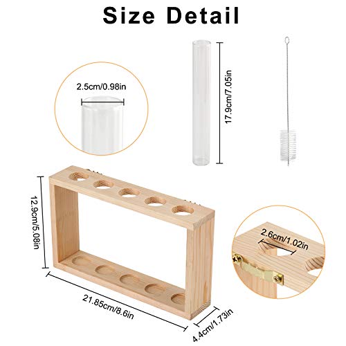 - Size Detail(Inch) - Wooden stand: 8.6W x 1.73D x 5.08H(21.85W x 4.4D x 12.9H CM), each hole diameter: 1.02 inch(2.6 CM); Glass tubes: 7.05H x 0.98 diameter(17.9H x 2.49CM diameter);