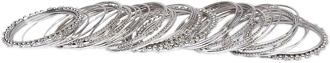 Generic - Traditional Indian Handmade Bangle Bracelet Set for Women Silver or Copper Finish Heritage Inspired Handcrafted Jewelry Available in 4 cm and 6 cm Size