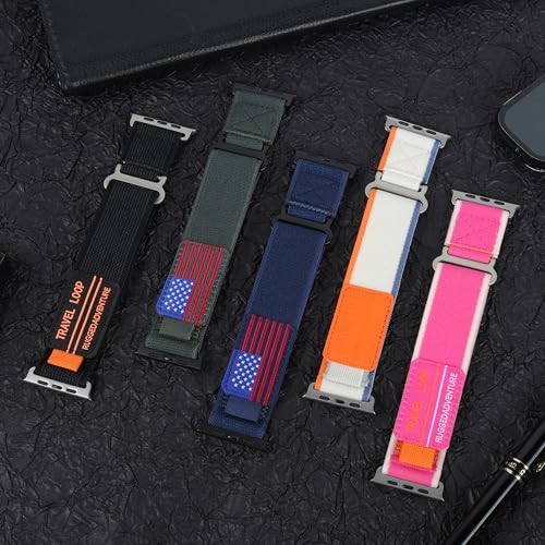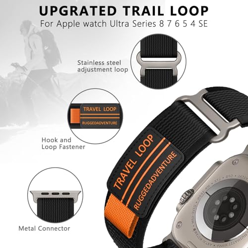 DMVEIMAL - سوار تريل لوب لساعة آبل مقاس 49 ملم 46 ملم 44 ملم 45 ملم 42 ملم 38 ملم 40 ملم 41 ملم، سوار رياضي ناعم من النايلون قابل للتعديل للرجال والنساء لساعة آبل 10 باند سلسلة 9 8 7 6 5 4 3 اس اي الترا/2