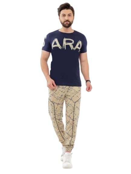Generic - TRAINING-MEN-SUMMER COTTON LYCRA T-SHIRT & PICA PANTS PRINTED PANTS-2XL-NAVY NO:413-981