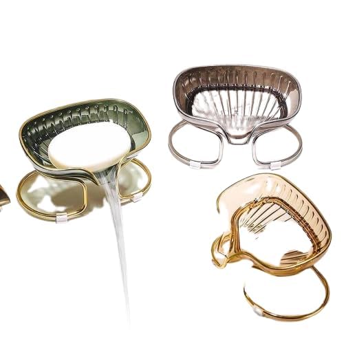 Generic - طبق صابون اكريليك شفاف مع حامل معدني ذهبي انيق للحمام والمطبخ، منظم تصريف المياه متعدد الاستخدامات، اكسسوار منزلي انيق ومتين