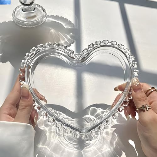 - This set includes six elegant transparent glass dessert plates, each shaped like a heart, designed to elevate the presentation of cakes, pastries, and sweets with a refined touch.