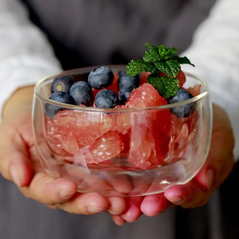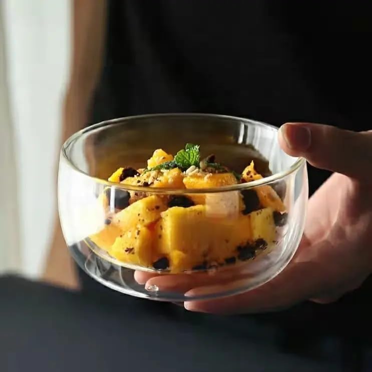 H-Home - وعاء زجاجي شفاف مقاوم للحرارة بجدار مزدوج لسلطة الفواكه والايس كريم - (450 مل)، عدد القطع: 1