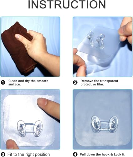- شفافية وتصميم غير مرئي: تأتي الخطافات بلون شفاف، مما يجعلها غير مرئية تقريبًا عند تثبيتها على الأسطح، لتتناسب مع أي تصميم داخلي دون التأثير على جمالية المكان.