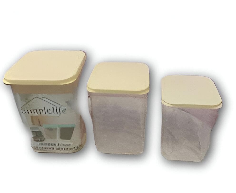 - Introducing a versatile set of three square food storage containers, designed with elegant lids. These transparent containers are perfect for organizing your kitchen essentials, allowing you to store a variety of items such as snacks, spices, legumes, and more. The set includes three different sizes: 1.4 liters, 2.1 liters, and 3.1 liters, catering to all your storage needs.