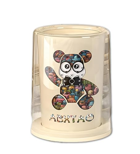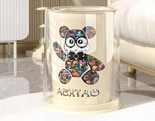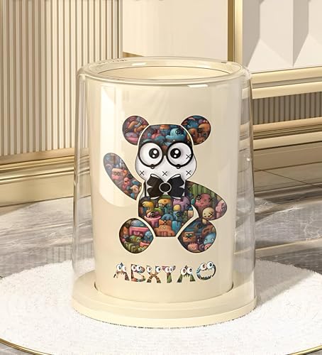 - Elegant and functional trash bin with a modern design in off-white color featuring a cute multicolored bear illustration that adds a unique decorative touch to any space, blending practicality with charm.