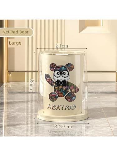 Generic - Trash Bin - Elegant and functional modern waste container i with a cute colorful bear design, featuring an easy-open transparent lid for bedrooms, offices, or living rooms.