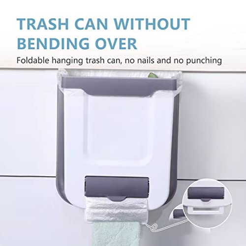 alouweekuky - Trash Can - Hanging Foldable Trash Bin Wall Mounted Waste Bin, Small Compact Garbage Can for Kitchen Toilet Bathroom Living Room, Storage Box for Trash Bag Multifunctional (With 1 Invisible Hook)
