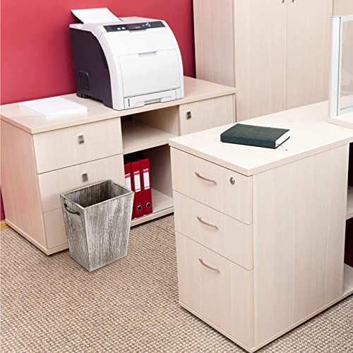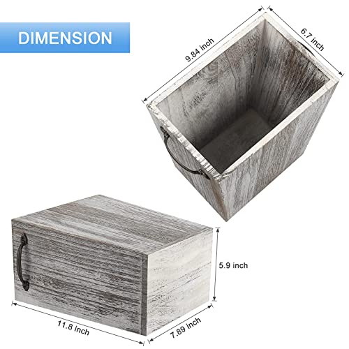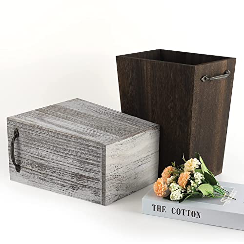 OYEAL - Trash Can Wastebasket Wood Garbage Container Bin with Built-in Double Metal Handles for Office, Bedroom, and Bathroom, Rustic Grey