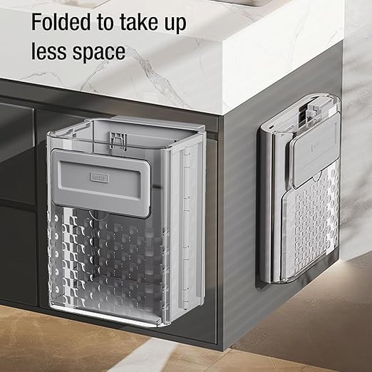 - 【Easy Installation】Installing our compact folding trash can is a breeze. Simply attach it to any cabinet drawer or door. Say goodbye to constantly opening and closing cabinet doors with wet hands while preparing fresh food. It's a convenient alternative to under-sink bins!