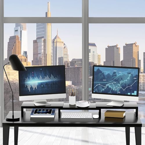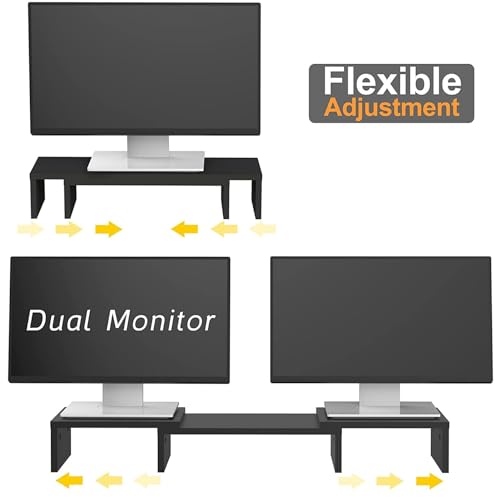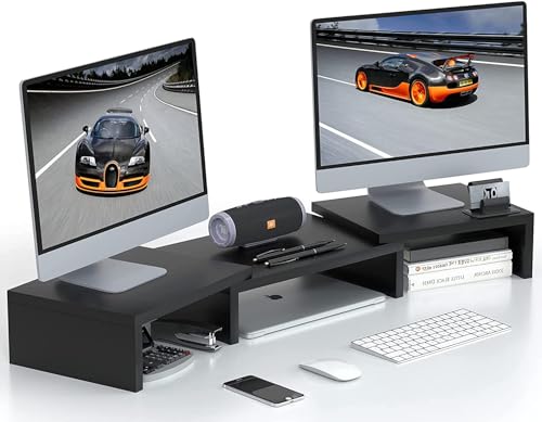 TRASSLE - TRASSLE Dual Monitor Stand Riser for 2 Monitors,Adjustable Length and Angle Multi Screen Stand,Multifunctional Office Desk Organizer for Laptop Desktop,PC, TV (Black)