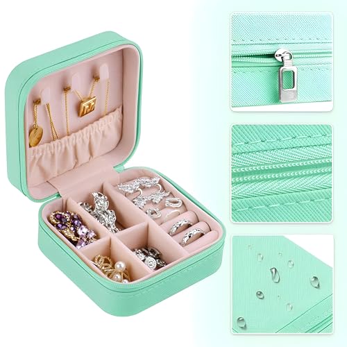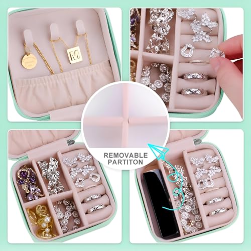 Generic - Travel Accessory - Luxe Mint Green Faux Leather Jewelry Box with Removable Partitions, Compact Size, Soft Wool Lining, Zipper Closure, Multi-Compartment for Rings, Earrings, Necklaces