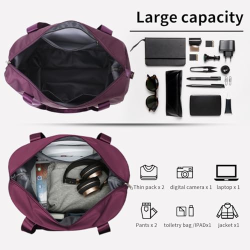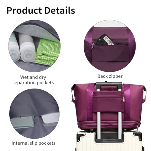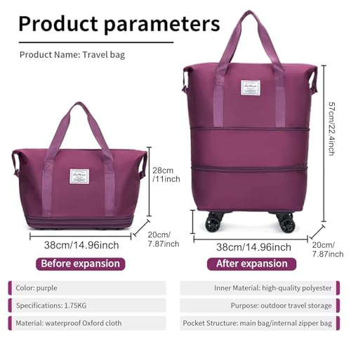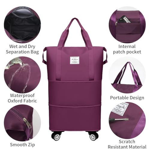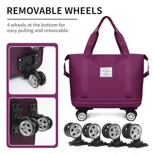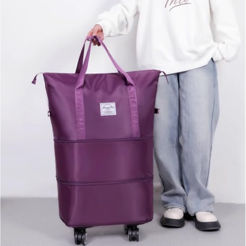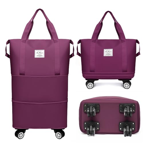 beibijio - شنطة سفر بعجلات لصالة الألعاب الرياضية يد كبيرة محمولة قابلة للطي وخفيفة الوزن ناعمة لعطلة نهاية الأسبوع للنساء باليد للتوسيع؛ للجنسين أرجواني داكن نايلون من بيبيجيو