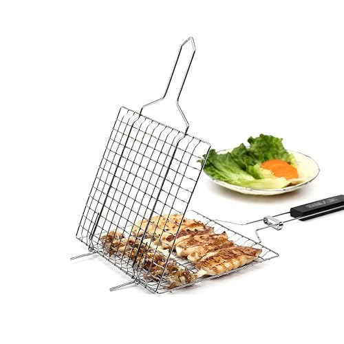 - Featuring a locking grilling tray that secures food in place, this basket allows for easy flipping of grilled items. It is perfect for cooking burgers, steaks, seafood, vegetables, fish, meats, shrimp, and other delicate foods. The design ensures that your food remains intact while cooking, making it ideal for outdoor camping, picnics, kitchens, hotels, and family gatherings, where you want to impress with perfectly grilled dishes.