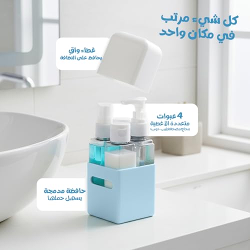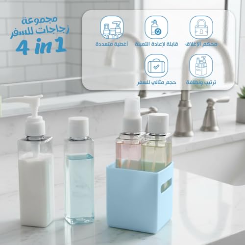Generic - Travel Bottles 4 in 1 Refillable Dispenser Leak-Proof Toiletry Containers for Body Wash Conditioner Sunscreen Lotion Portable Pump Set (Blue)