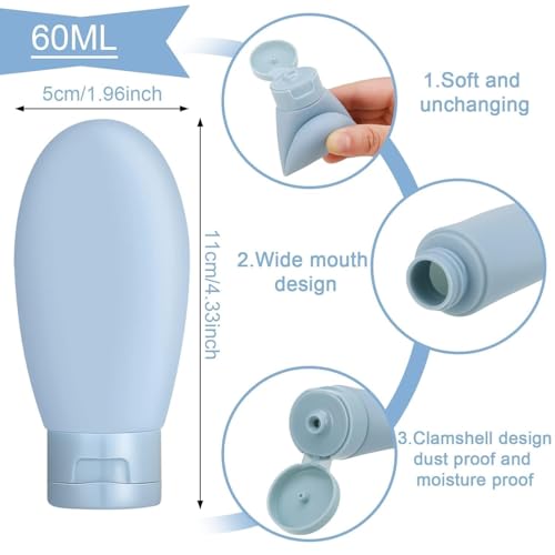 - Leak-Proof Design: A self-sealing valve in the lid prevents liquid leakage. Make sure they are tightened before putting them in the bag. The wide mouth design is easy to replenish and clean, and will not waste your toiletries. The bottle is soft and can easily squeeze out the amount you need.