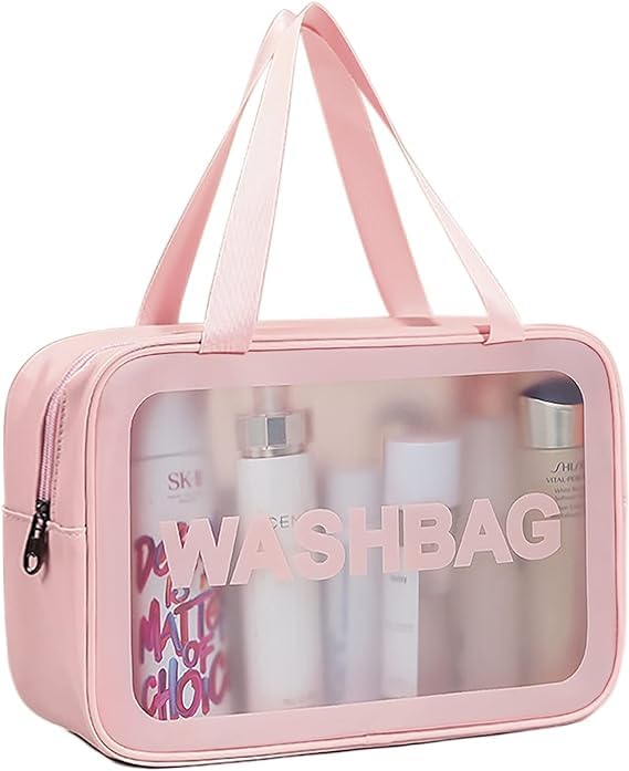 Generic - شنطة مستحضرات تجميل للسفر للنساء والبنات شفافة غير لامعة مع مقبض عملي لتنظيم الاكسسوارات وأدوات العناية الشخصية، متعدد الالوان
