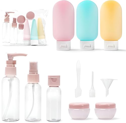- Includes a 80ml pump bottle, 50ml spray bottle, 30ml foldable top bottles, and three 60ml silicone bottles for versatile storage of liquids and gels.