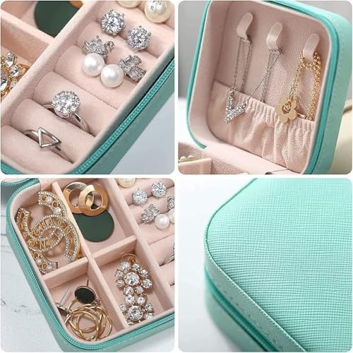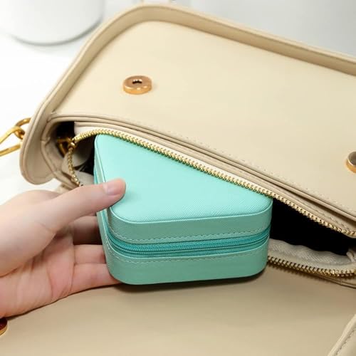 - 【المادة: منظم مجوهرات للسفر مصنوع من جلد البولي يوريثين عالي الجودة، متين ومقاوم للماء، بطانة قطيفة ناعمة لحماية الخاتم من التآكل بسوستة وإغلاق سلس، مما يجعل من السهل فتحه وإغلاقه.