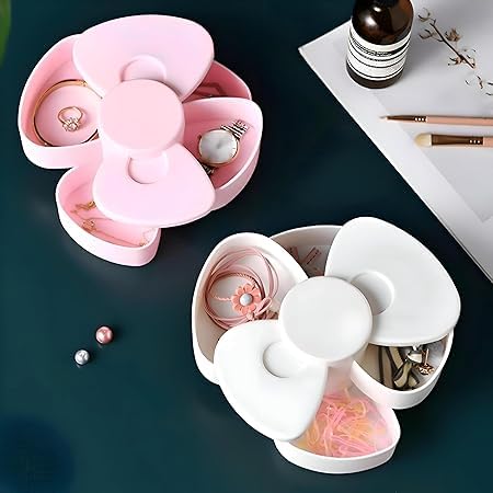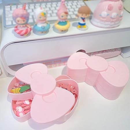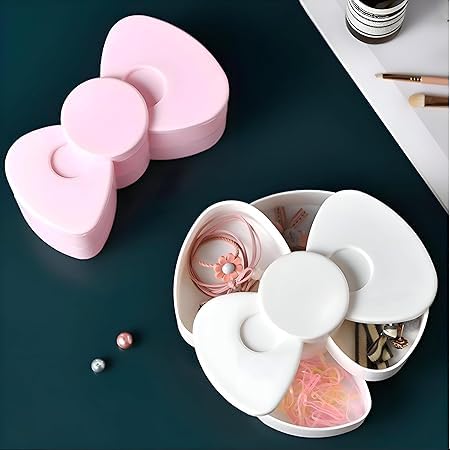 Generic - صندوق مجوهرات للسفر منظم مجوهرات دوار - حافظة مجوهرات للسفر مع غطاء على شكل فيونكة حامل اساور وخواتم للبنات المراهقات