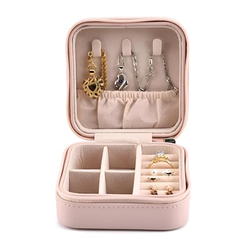 Generic - Travel Jewelry Case - Compact Jewelry Organizer with Mirror, Stylish and Practical for Earrings, Rings, Necklaces, Makes a Great Gift for Women Girls on Special Occasion