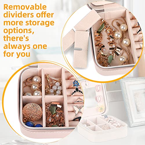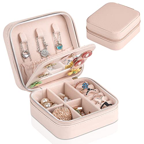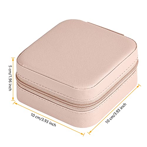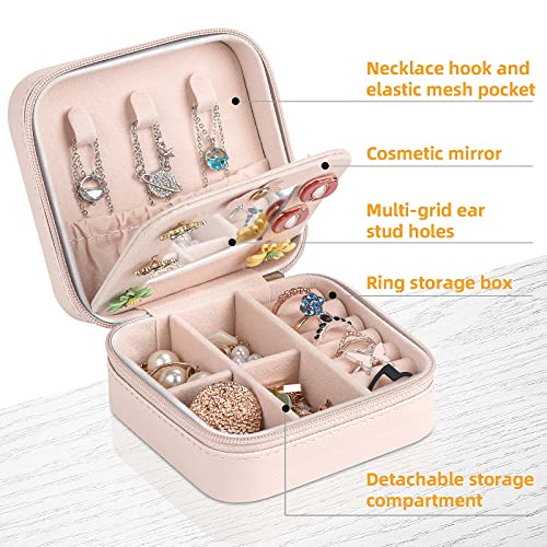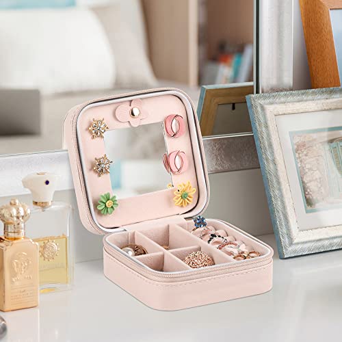 Chemailon - Travel Jewelry Case, Small Jewelry Organizer Travel with Mirror Portable Jewelry Boxes for Women PU Leather Jewelry Storage Bag for Ring Pendant Earring Necklace Pink