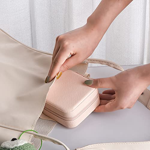 - 【Small size & portable design】:Size: 3.93"L*3.93"W*1.96"H,The tralvel jewelry holder can be carried anywhere, and a good mood starts with well-dressed, it is a must-have item when traveling, and can be put in a handbag or suitcase.