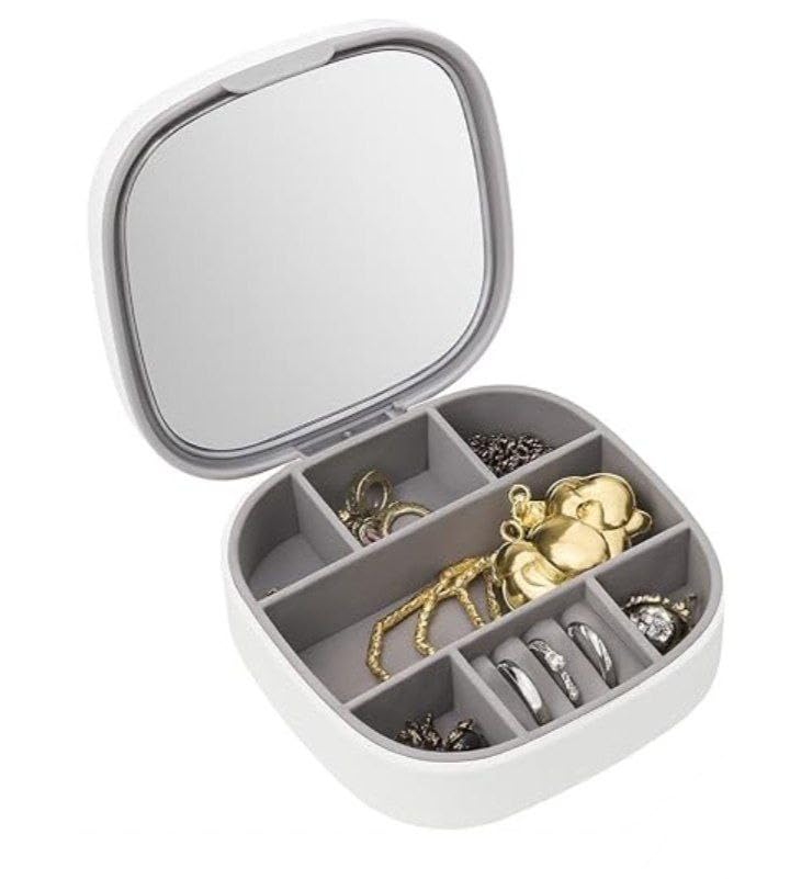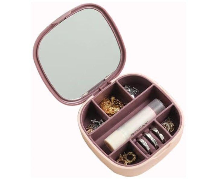 Generic - صندوق منظم مجوهرات للسفر - حقيبة تخزين اكسسوارات صغيرة مع مراة شفافة، تصميم انيق متين للنساء والفتيات (قطعة واحدة)