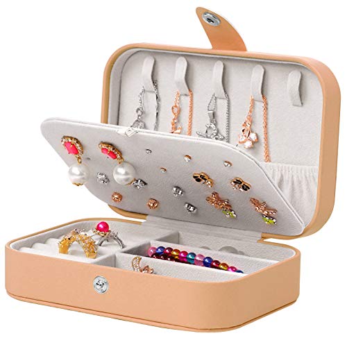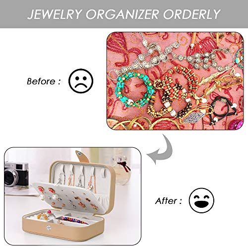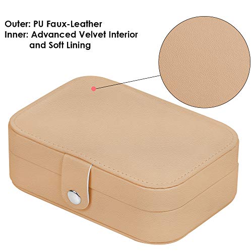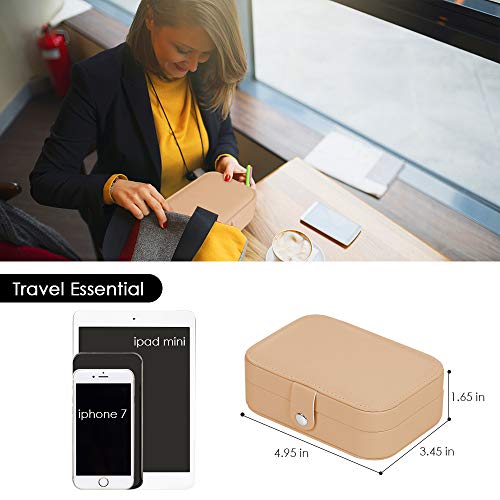 XYMAO - Travel Jewelry Organizer,PU Leather Travel Jewelry Case,Double Layer Small Jewelry Box for Women Girls,Jewelry Organizer Box for Necklace,Ring,Earring (Khaki)