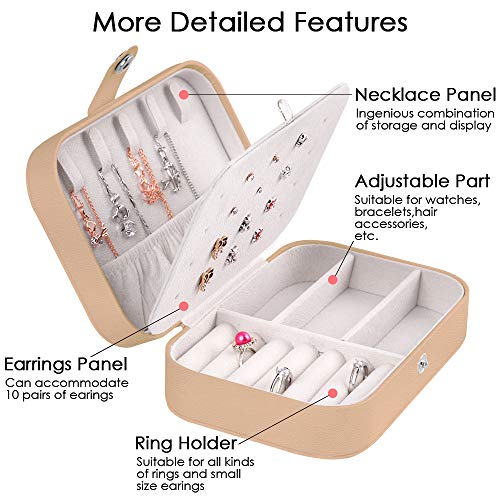 - 【Amazing Size and Big Capacity】 - Double Layers Travel Jewelry box,avaliable for 5 pairs necklace,10 pairs earing,12 rings and one changable store room.Suitable for traveling jewelry carring and organizer.