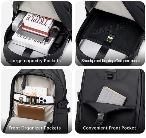 Travel Laptop Backpack, 47.5 x 31.5 x 17 cm, Water-Resistant, Large Capacity with Multiple Pockets, Black