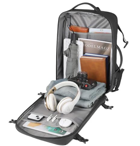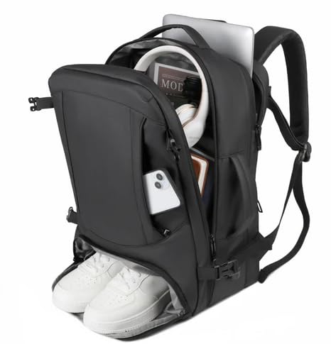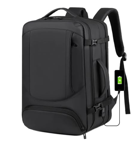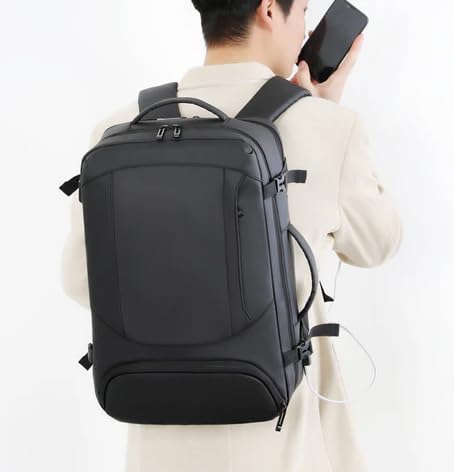 Travel Laptop Backpack, 47x32x18 cm, USB Charging Port, Expandable, Waterproof, Black