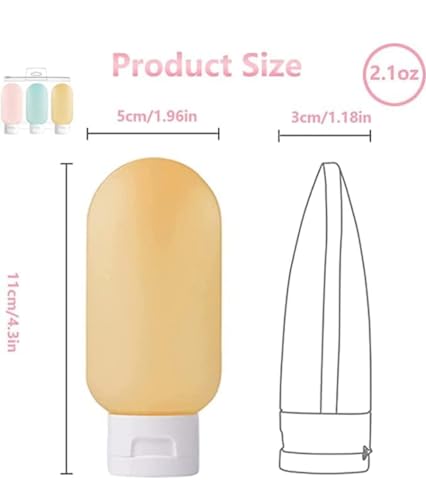 - * * 【Multicolor】 This travel toiletry bottles have three bright colors. Different colors' bottles can be filled with different toiletries.Silicone Travel Bottles with Transparent Carry Bag(60ml (3pcs))