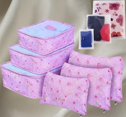 Generic - طقم منظم حقائب السفر 6 قطع - لون موف مستورد لترتيب الملابس والمقتنيات الشخصية - حقائب تخزين موفرة للمساحة في الشنط والرحلات ir