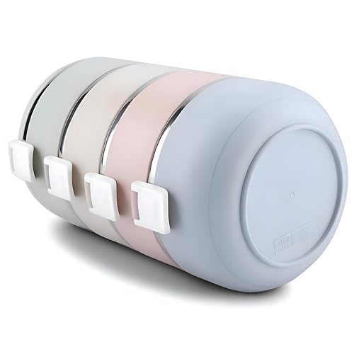 Generic - مجموعة غداء للسفر - صندوق بينتو من 4 طبقات من الستانلس ستيل بسعة 2800 مل، مقابض متينة وحجم صغير مثالي للنزهات الخارجية او وجبات المكتب