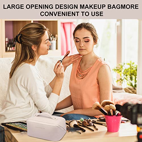 Aogist - شنطة مكياج للسفر، مستحضرات تجميل كبيرة مزدوجة الطبقات، جلدية مقاومة للماء، ادوات الزينة الجلدية المحمولة للنساء والفتيات، منظمة ابيض - ايه، فراء صناعي، من اوغيست
