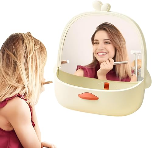 Generic - مرآة مكياج للسفر - رفيقتك المفضلة الجديدة لتطبيق المكياج! تأتي هذه المرآة المكتبية اللطيفة مع مساحة تخزين واسعة للمجوهرات وإكسسوارات الشعر (1, بالالوان الموضحة, 20x18 سم)