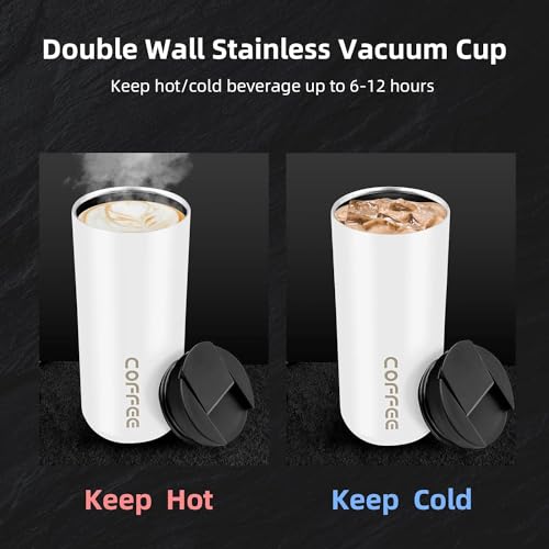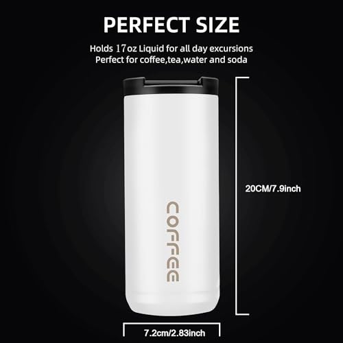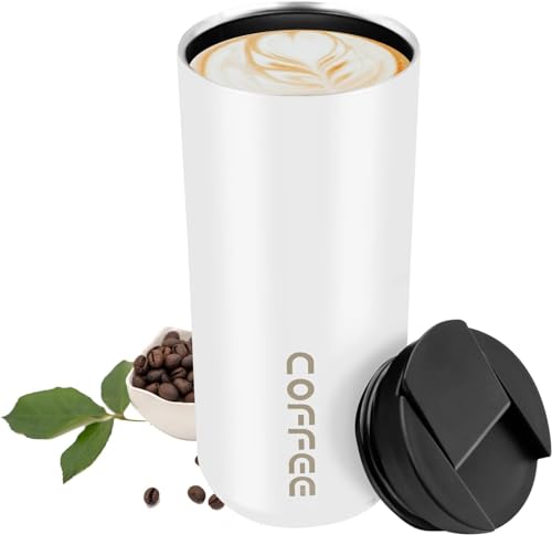 Aufwolken - مج للقهوة عازل للحرارة للمشروبات الساخنة والباردة قابل لإعادة الاستخدام مع غطاء مانع للتسرب للسيارة والسفر والأماكن الخارجية والمكتب سعة 500 ملليلتر