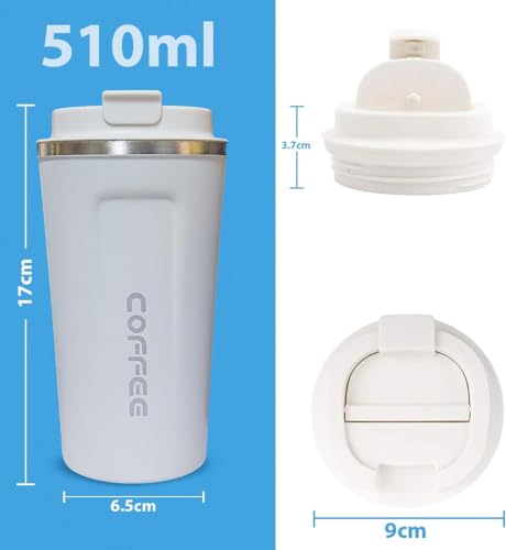 Generic - مج سفر من الفولاذ المقاوم للصدأ مع عزل بتفريغ الهواء بسعة 510 مل بجدار مزدوج، مقاوم للتسرب ومضاد للانزلاق ويحافظ على المشروبات ساخنة أو باردة، بلون أبيض
