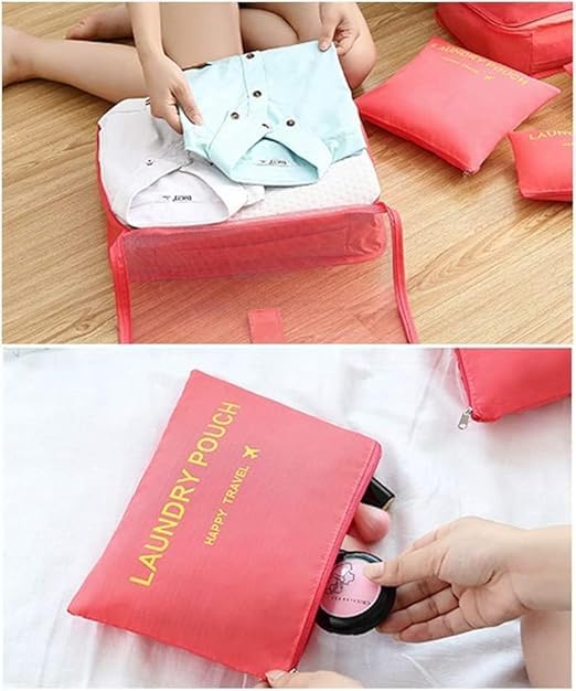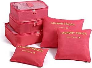 Generic - Travel Organizer Bags Set, 6 Pieces, Red, Packing Cubes for Clothes and Shoes