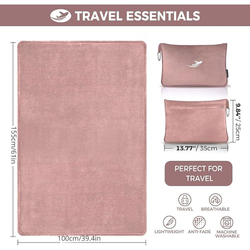- Skin-friendly Blanket -The travel blanket is crafted from plush polyester microfiber fabric, providing a cozy and furry touch for a comfortable sleep throughout your flight. Sized at 40 x 60 inches, it's versatile for all seasons. This airplane blanket is easy to care for—machine washable in cold water and can be tumbled dry at low temperature. It's not just for travel; you can use it as an air-conditioning blanket, bedding sheet, for quick naps, or during car trips.