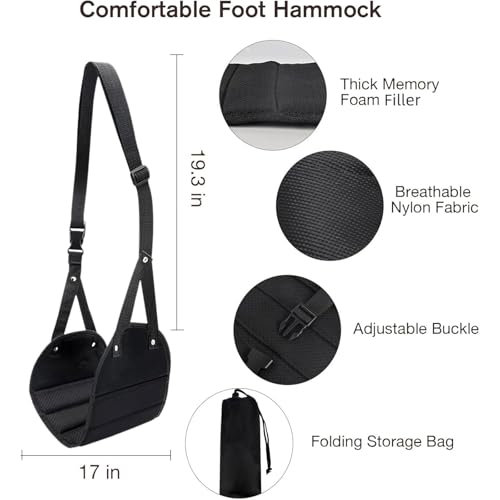 - Adjustable Foot Hammock with Strong Support - Hang this airplane foot rest from your tray table effortlessly. It features an adjustable strap for various heights. This foot hammock not only provides leg support but also aids in preventing lower back pain, stiffness, and leg swelling during extended flights and prolonged sitting. Enhancing blood circulation, it effectively alleviates fatigue.