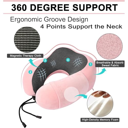 - Memory Foam Neck Pillow - The travel pillow, airplane neck pillow, measuring 11 x 5.9 x 9 inches, is crafted from high-quality memory foam with 5-second rebound technology for lasting comfort. The travel pillows for airplanes are ergonomic hump design, with an invisible zipper and adjustable rope lock, effectively cradles your neck, preventing head tilt and alleviating travel-induced neck pain. Side pockets add a practical touch, offering convenient storage for cards, keys, cell phones.