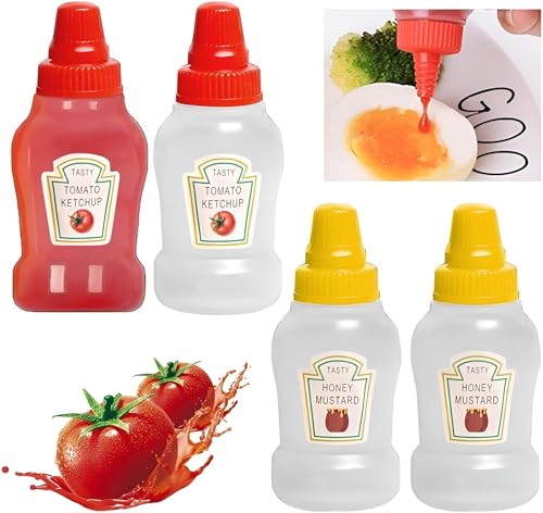 Generic - زجاجات صلصة بحجم مناسب للسفر - حاويات صغيرة لصلصة الشواء وصلصة التيرياكي وخردل العسل | زجاجية لتخزين الطعام رائعة للتخييم والسفر 4 زجاجة بلاستيك